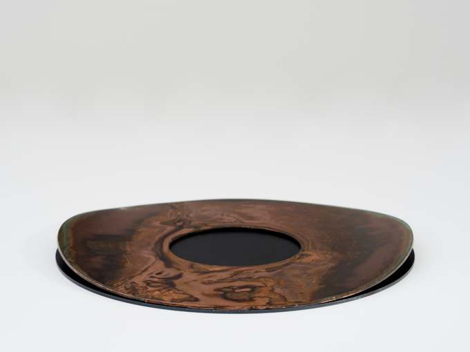 Una serie di elementi circolari piani e curvati si fondono per determinare spazi condivisi dedicati alla frutta, agli oggetti, al vuoto assoluto. Sono fusioni di corpi che si incontrano e si discostano, occhi sul mondo che accentrano attenzione e funzione emozionale.